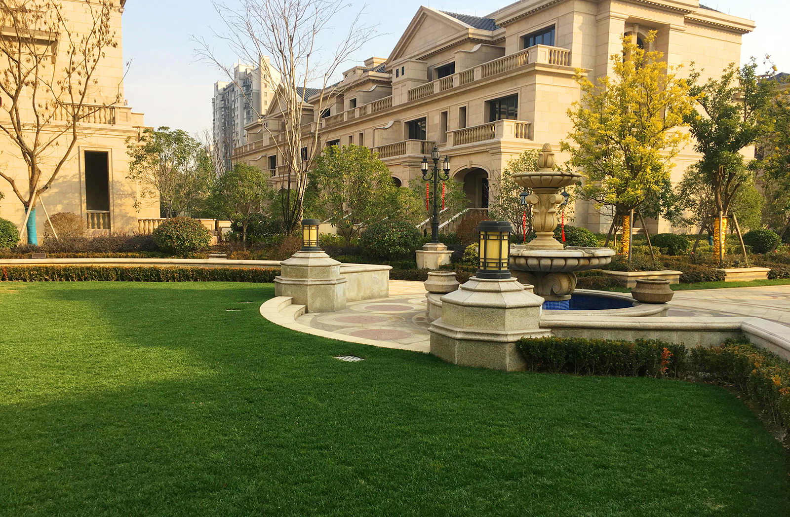 本案的景觀設(shè)計理念為:營造“出則繁華,入則寧靜”的新古典園林景觀。