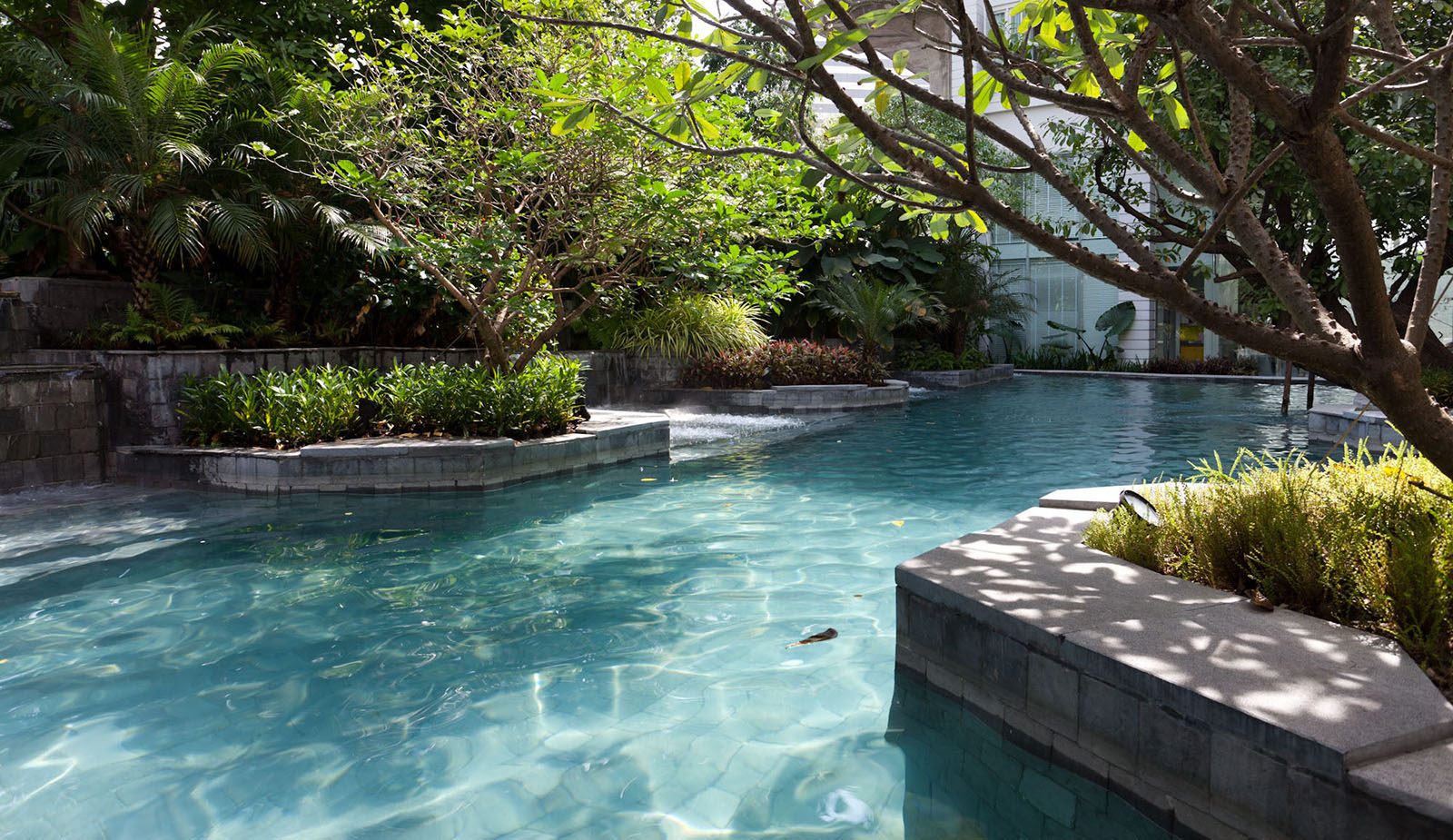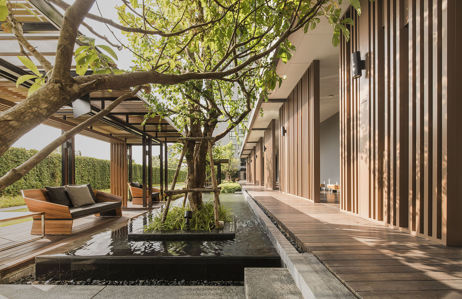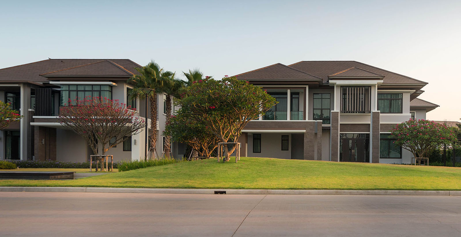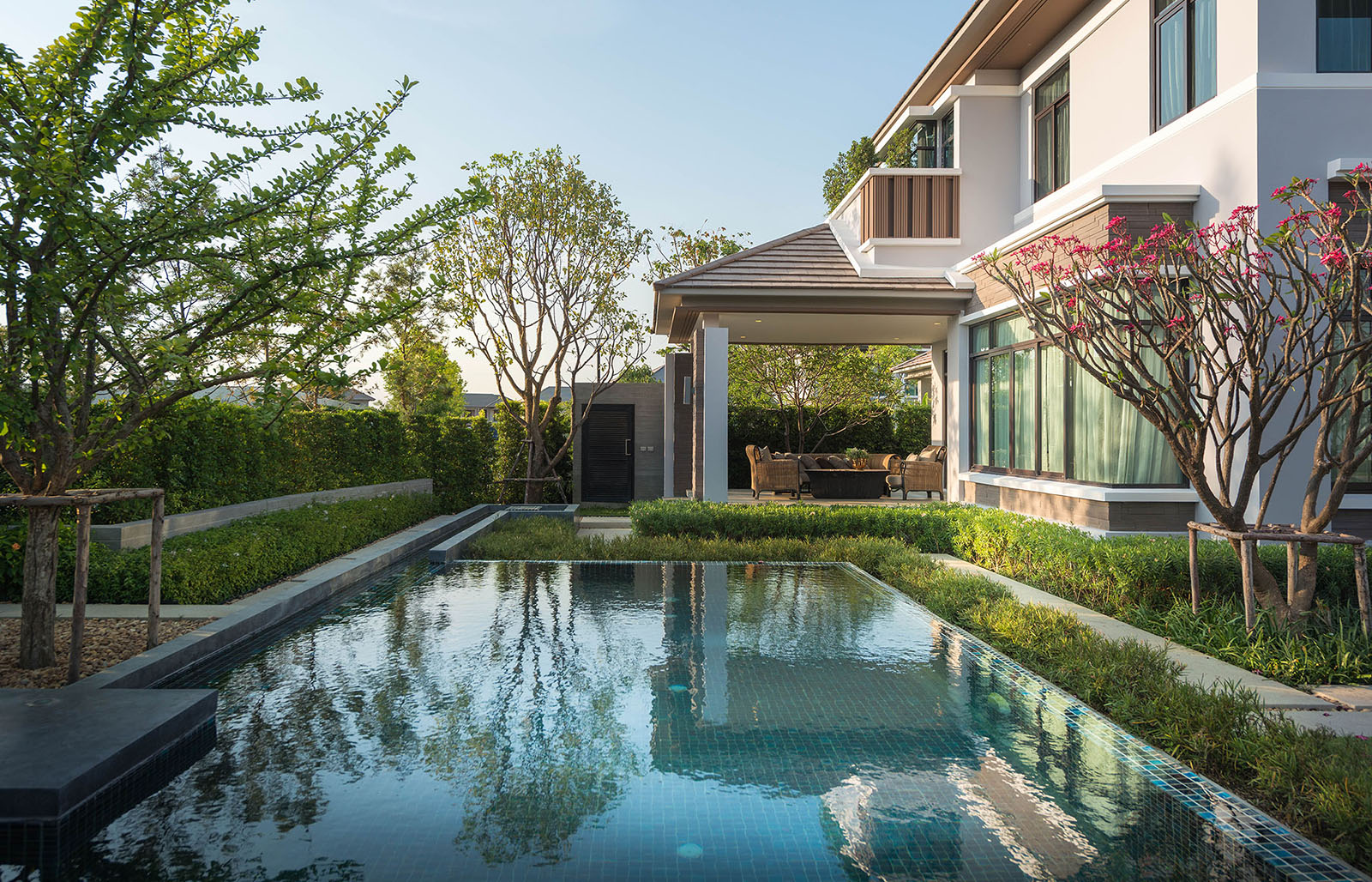 景觀設計時我司專門組織設計是遠赴新加坡游學,深入理解晉合集團開發(fā)理念,將新加坡的特別濃郁的度假式的景觀思維與傳統(tǒng)的蘇州園林的文化意蘊相結合,并且在在公共區(qū)域之外,別墅庭院采用統(tǒng)一風格韻味下不同的針對性、定制型設計,最后表現(xiàn)出來的即是晉園別墅這種極具具有東方詩意、度假風情的稀缺純墅區(qū)景觀。景觀領域的成功,大大增強了別墅本身的價值,也是后來墅區(qū)受惠于金雞湖版塊之外產(chǎn)生極高溢價的另一重原因。