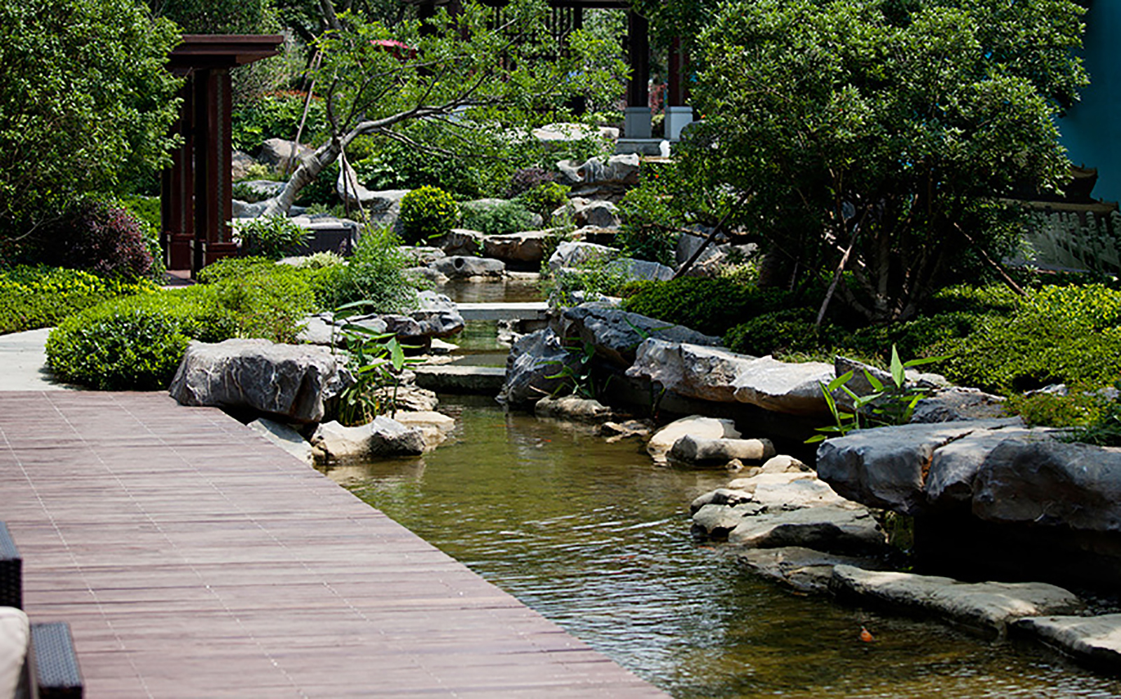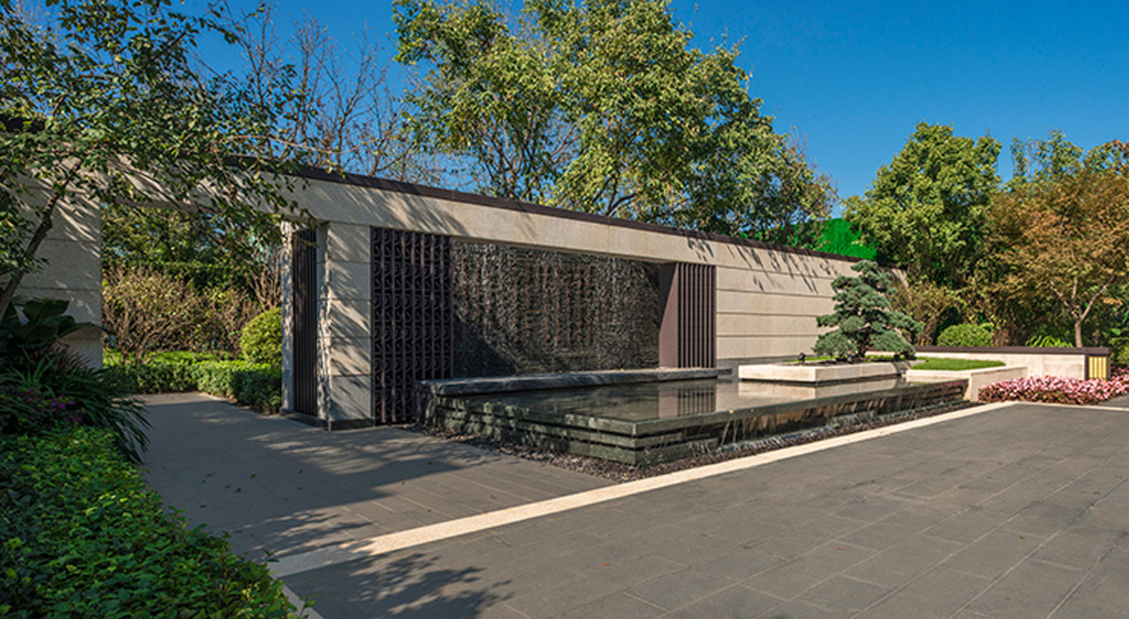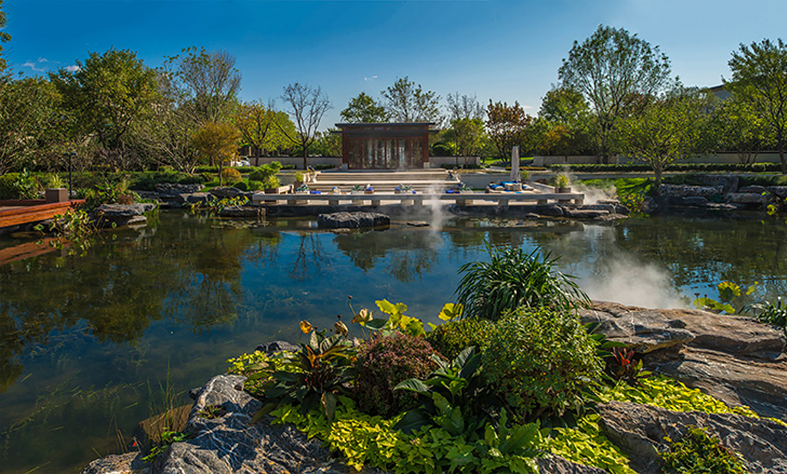 以筑夢東方境,情繞水云庭為設計主題,象法真山真水形意,現代與古典相交融,人文藝術共饗薈萃。打造檀園簡雅、寫意、韻味新中式園林景觀。