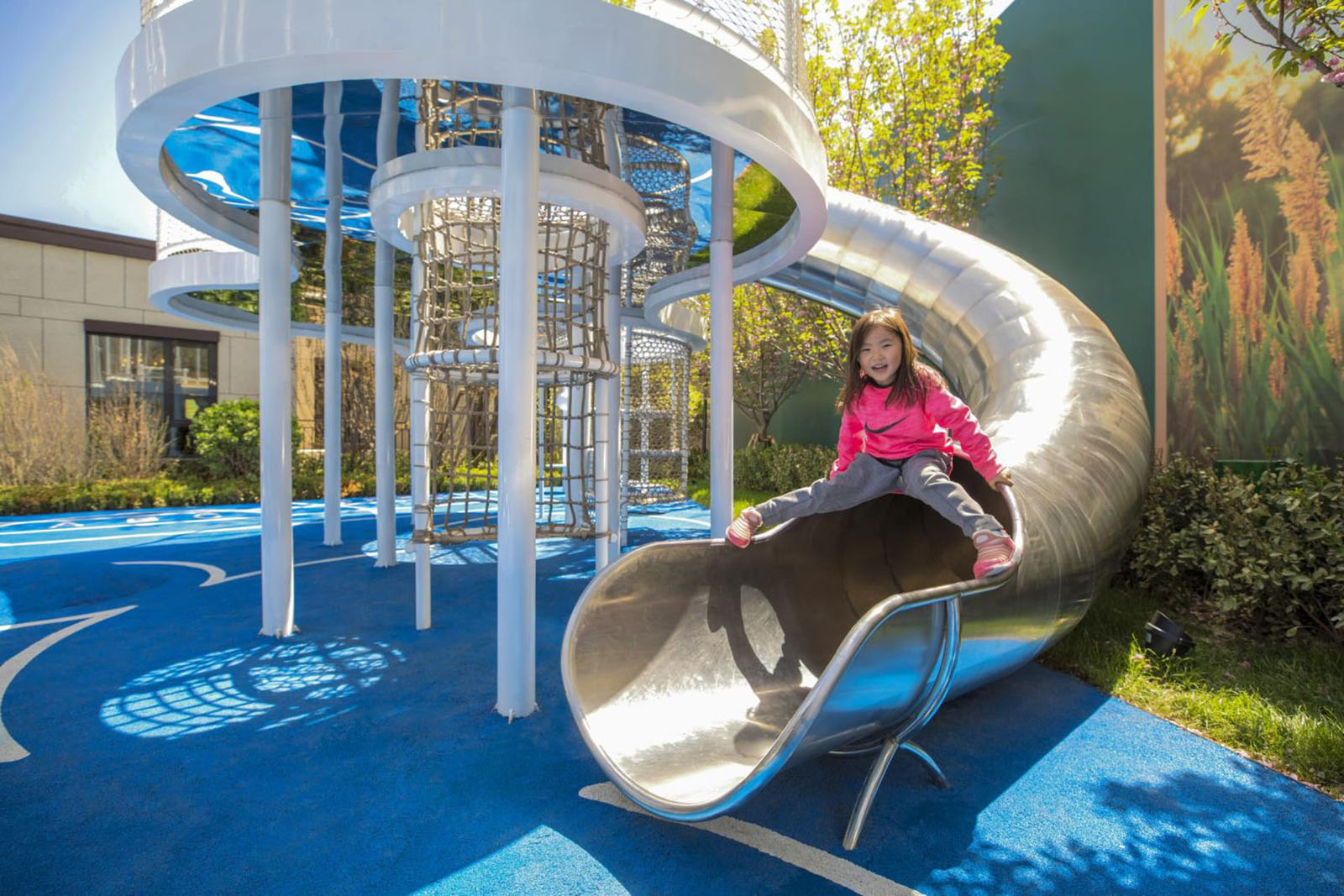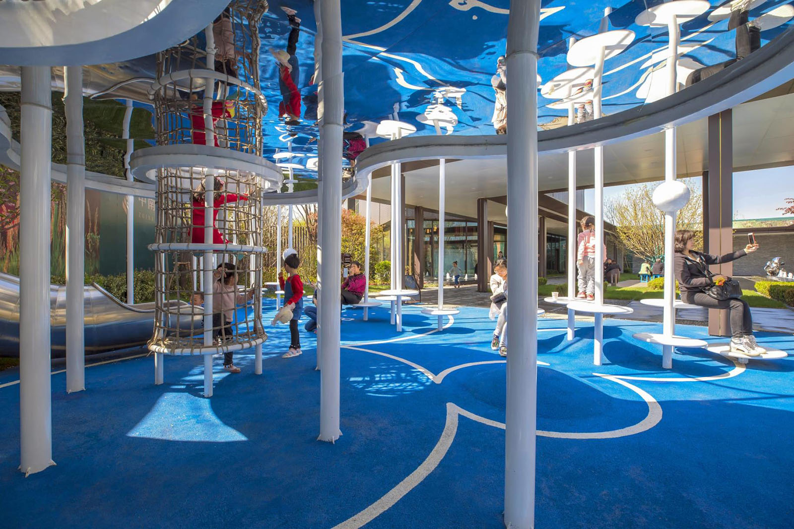 特別設計的云鏡主題滑梯為主景,讓兒童感受云與天空倒影的幻夢鏡光。