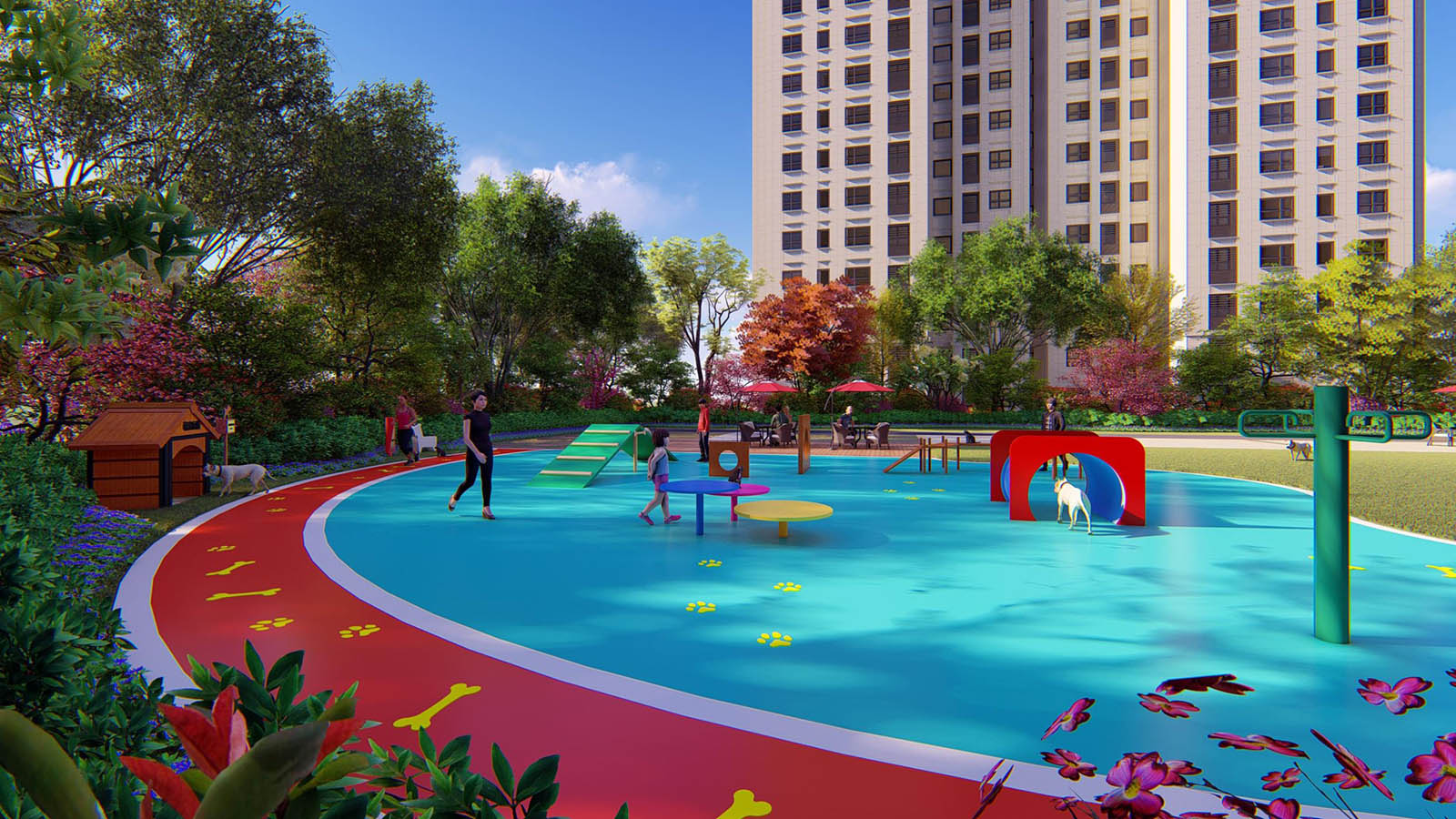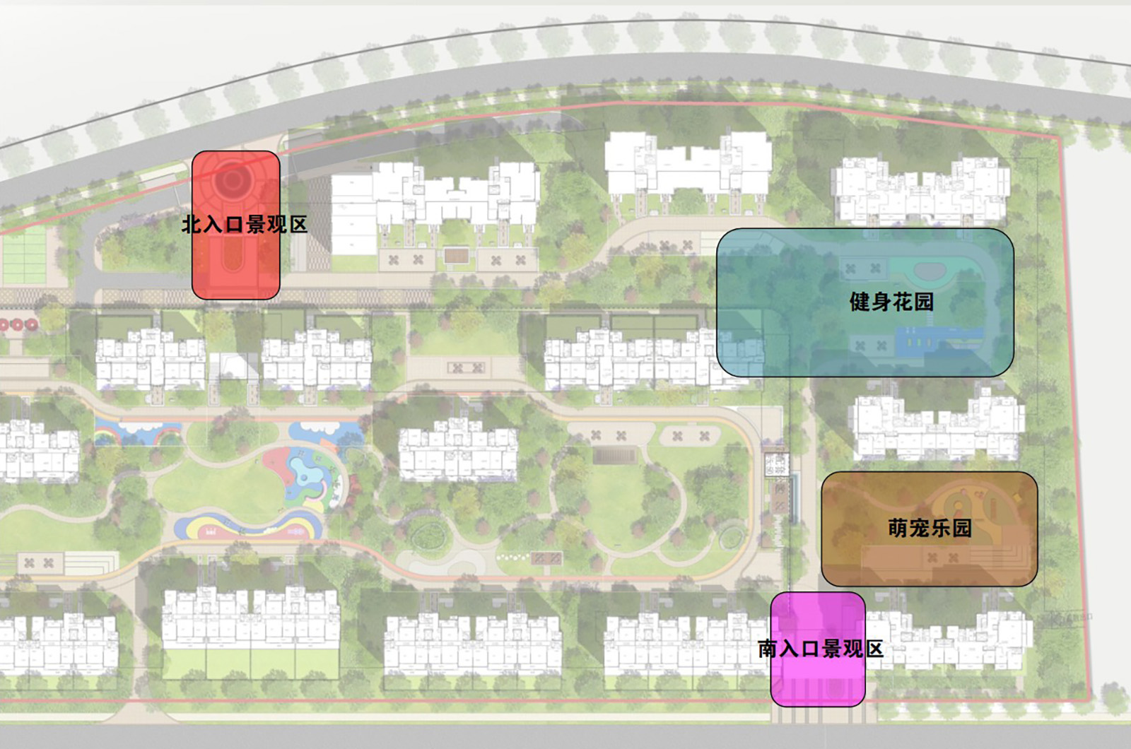 高層區以高端人才為目標群體,宅間組團設置以萌寵樂園、健身花園為主空間,配套設計多個宅前休閑空間的景觀功能區,契合業主群體生活起居習性。