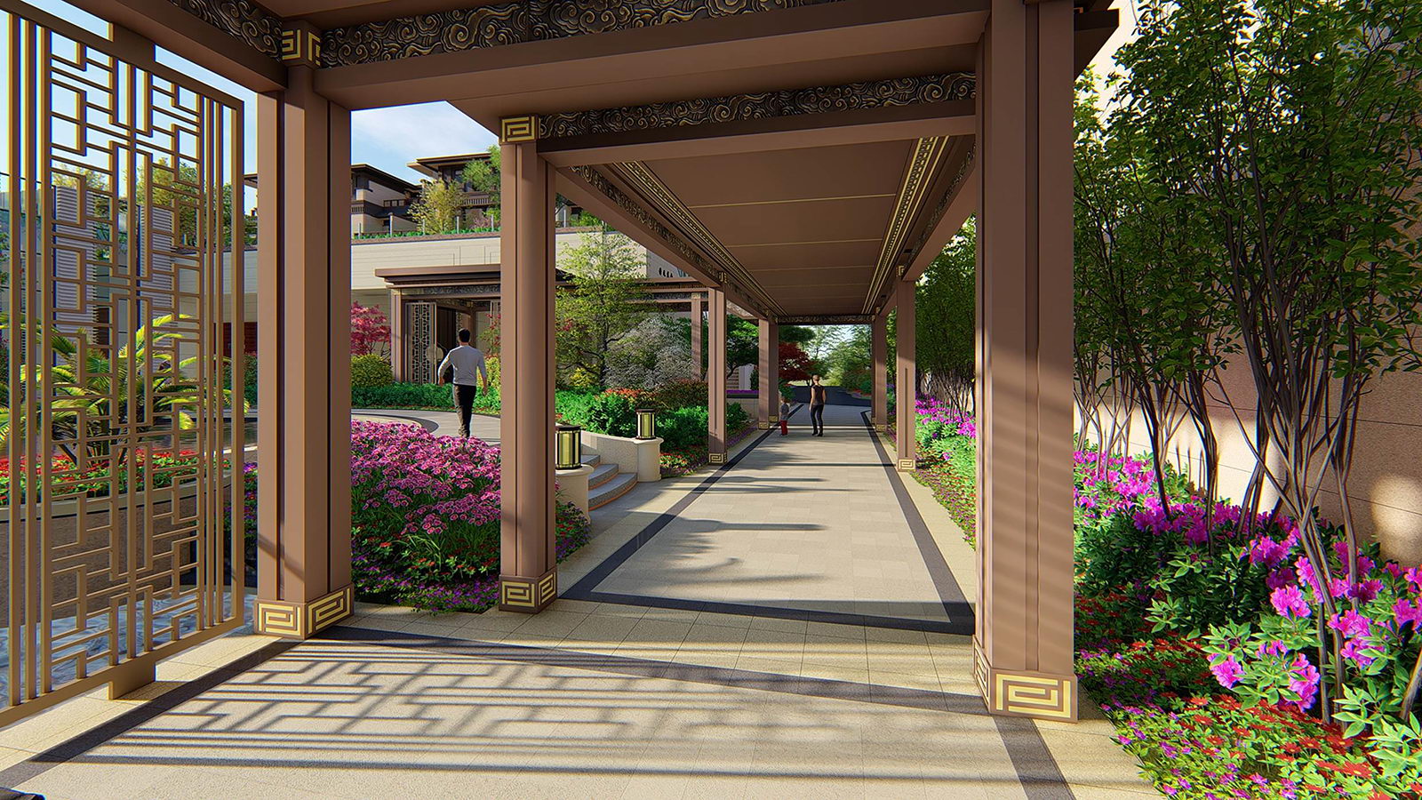 綠帶景觀婉約不失通透,層次豐富,步移景異,景致深遠