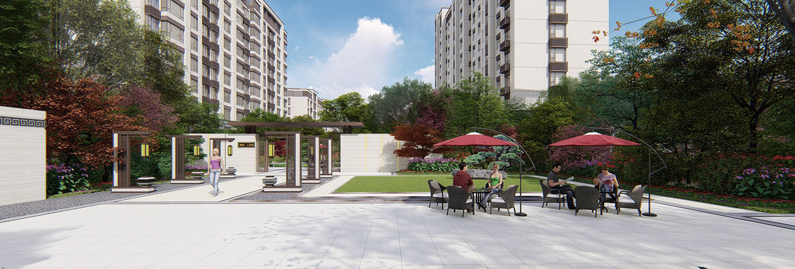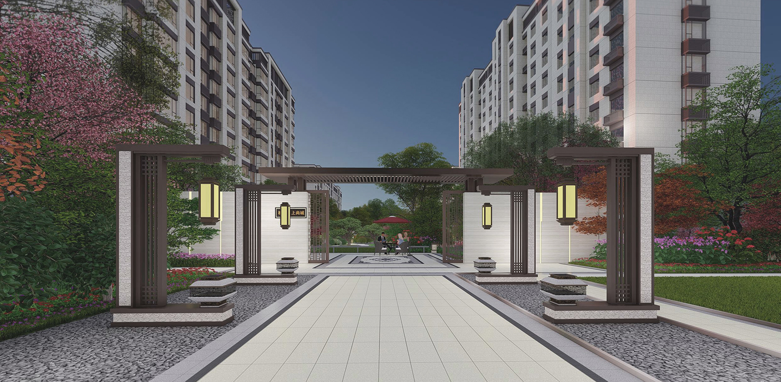 一軸、三進院,五大主題宅間景觀,以顯勢,迎客 、閑游、幸福悅居貫穿始終,采用現(xiàn)代、輕靈的中式設(shè)計手法 ,見徐東方意境元素 。